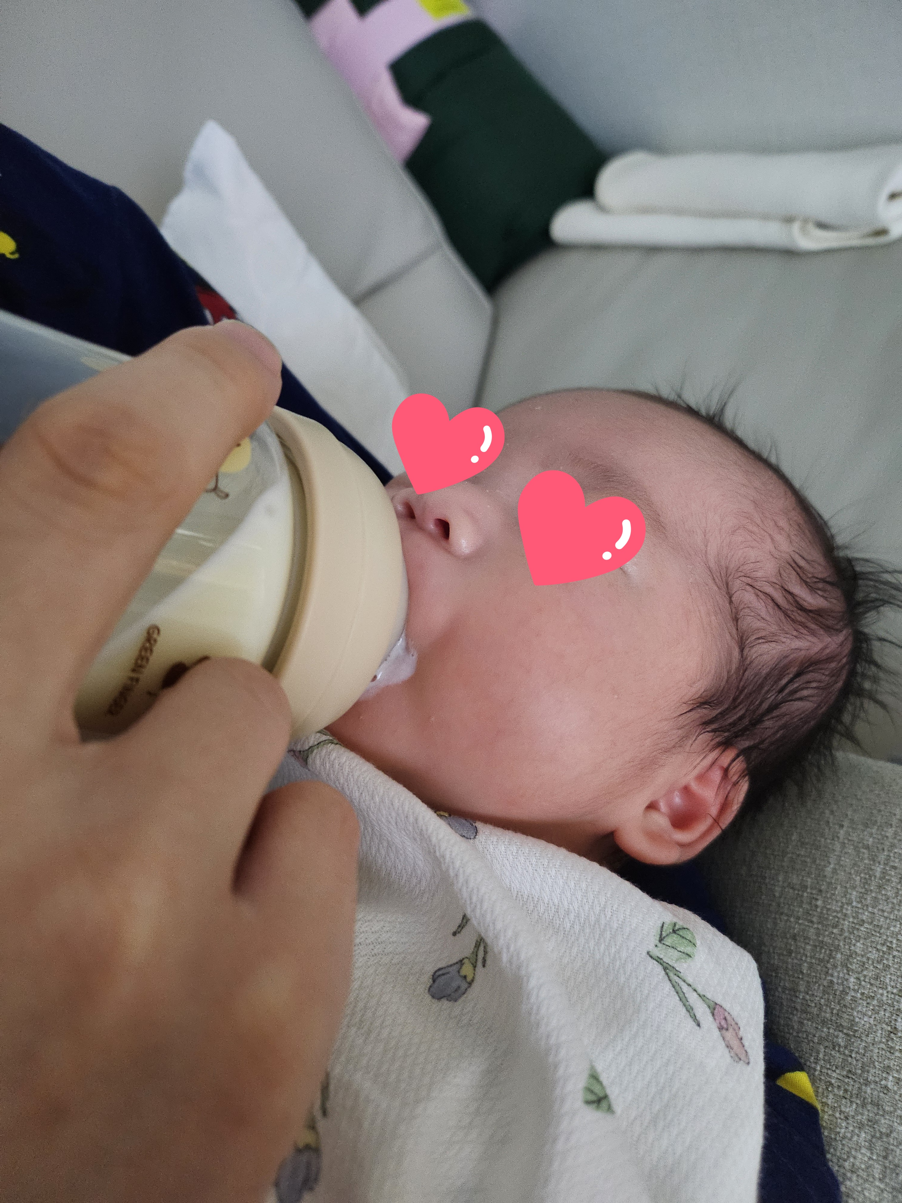 출산 후 조리원에 있는 동안에는 모유 수유가 비교적 수월했지만, 퇴소 이후의 생활을 고려했을 때 지속적인 모유 수유가 현실적으로 어렵다고 판단해 완전 분유 수유를 선택하게 되었습니다.
