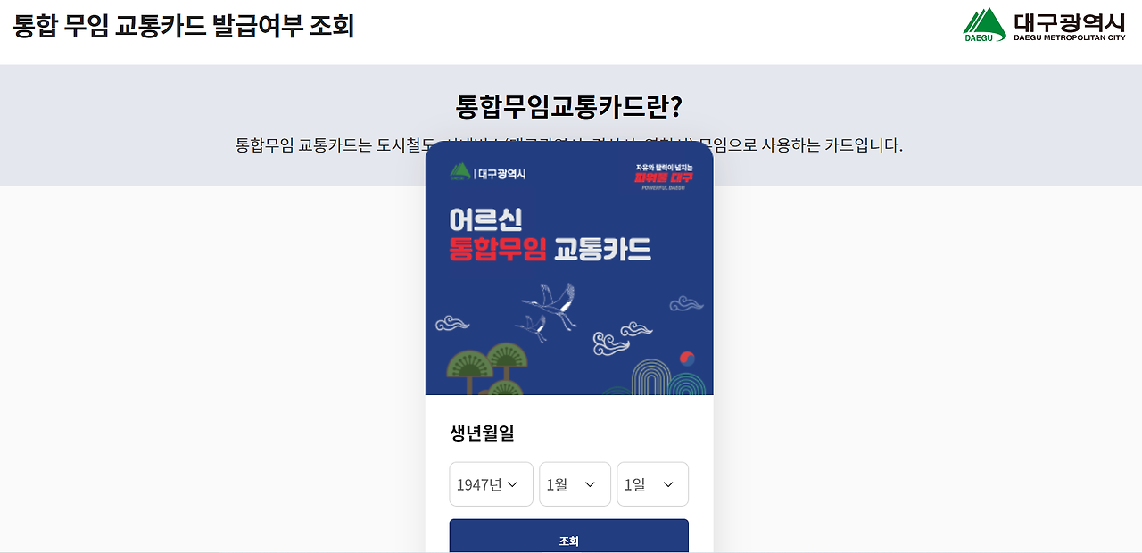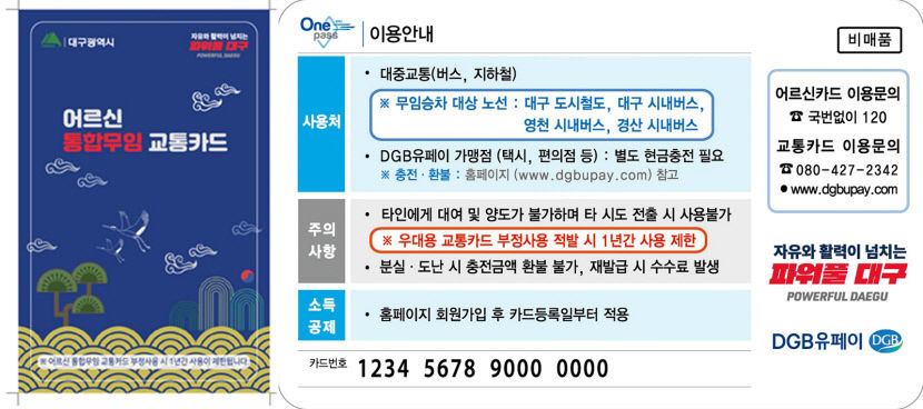 대구 어르신 통합무임 교통카드는