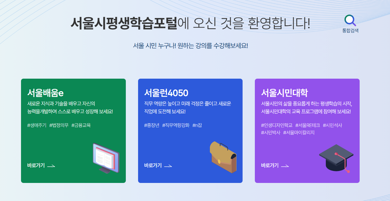 서울시 평생학습포털은 서울시에서 직접 운영하는 시민 대상 학습 서비스로, 연령·학력·경력과 무관하게 누구나 자유롭게 배울 수 있도록 설계된 통합 교육 플랫폼입니다.