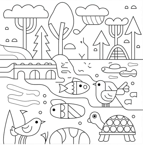✔ 선이 단순한 그림: 복잡한 캐릭터보다는 꽃, 열매, 나무, 동물, 전통 문양