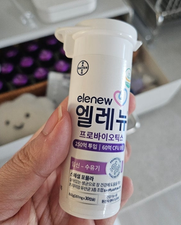 유산균은 장내 환경을 개선해 변비 완화, 소화 개선, 면역력 유지에 도움을 줍니다. 임신 중 장 활동이 둔해지기 쉬워서 꼭 필요한 영양제 중 하나예요. 임신 초기에 변비로 꽤 고생을 했어서 어떤 유산균 제품을 선택할지 고민이 많았어요. 여러개 먹어보고 이 제품이 제일 효과가 좋아서 임신 기간 동안 엘레뉴 제품으로 정착했어요.